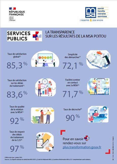 Votre satisfaction est mesurée régulièrement. La publication de nos indicateurs de qualité de service est trimestrielle. Les résultats sont consultables ci-après ainsi que dans votre agence MSA.
